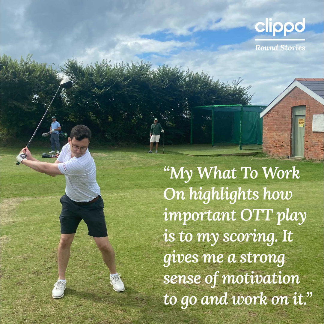 After finishing with an 87 it would have been easy to let the negatives outweigh the positives but Clippd showed there was plenty to be pleased about. His PUTT performance was excellent, reflected in an Average Shot Quality of 95 for the round. Losing six balls only confirms why his What To Work On priority list has Off The Tee (OTT) play at the top!
