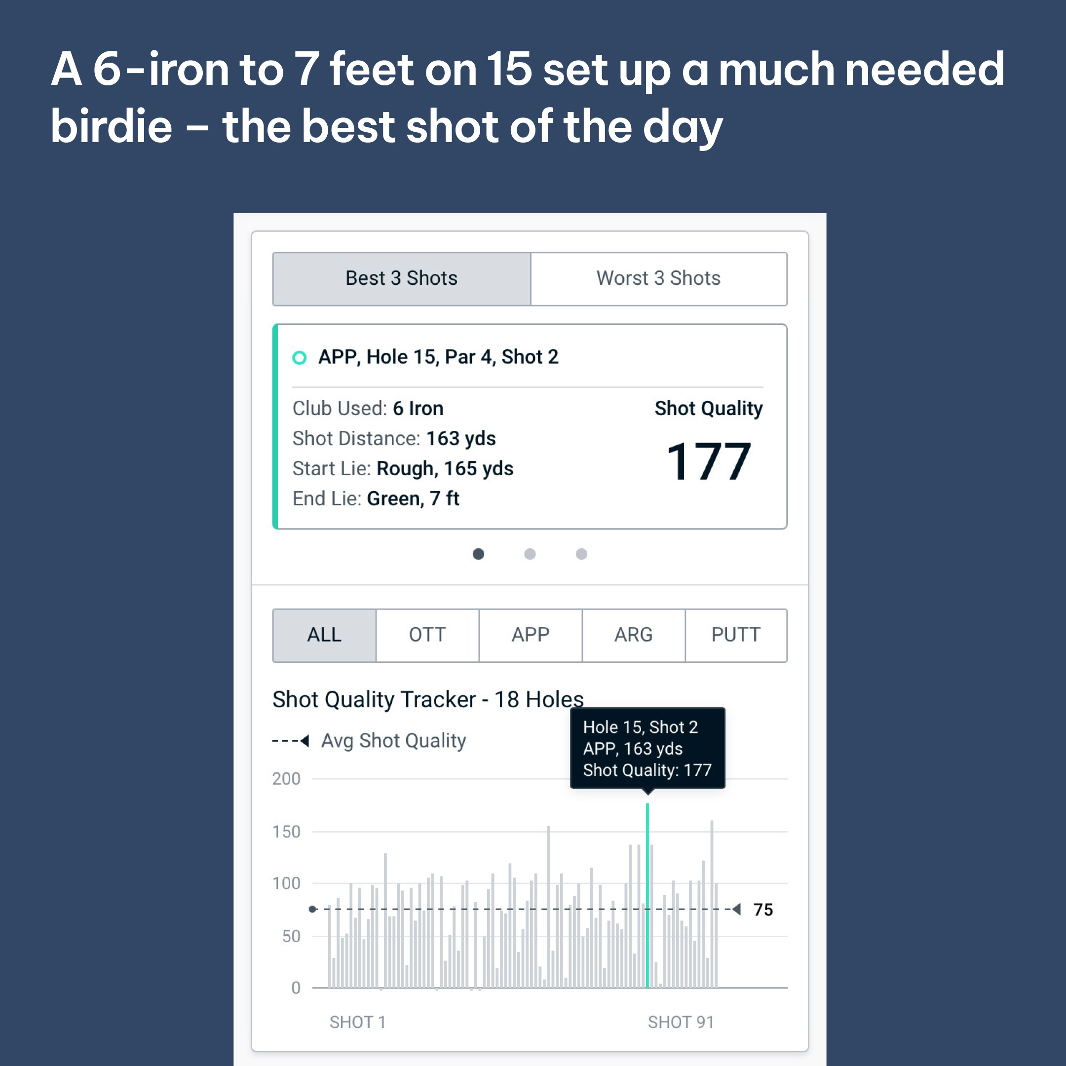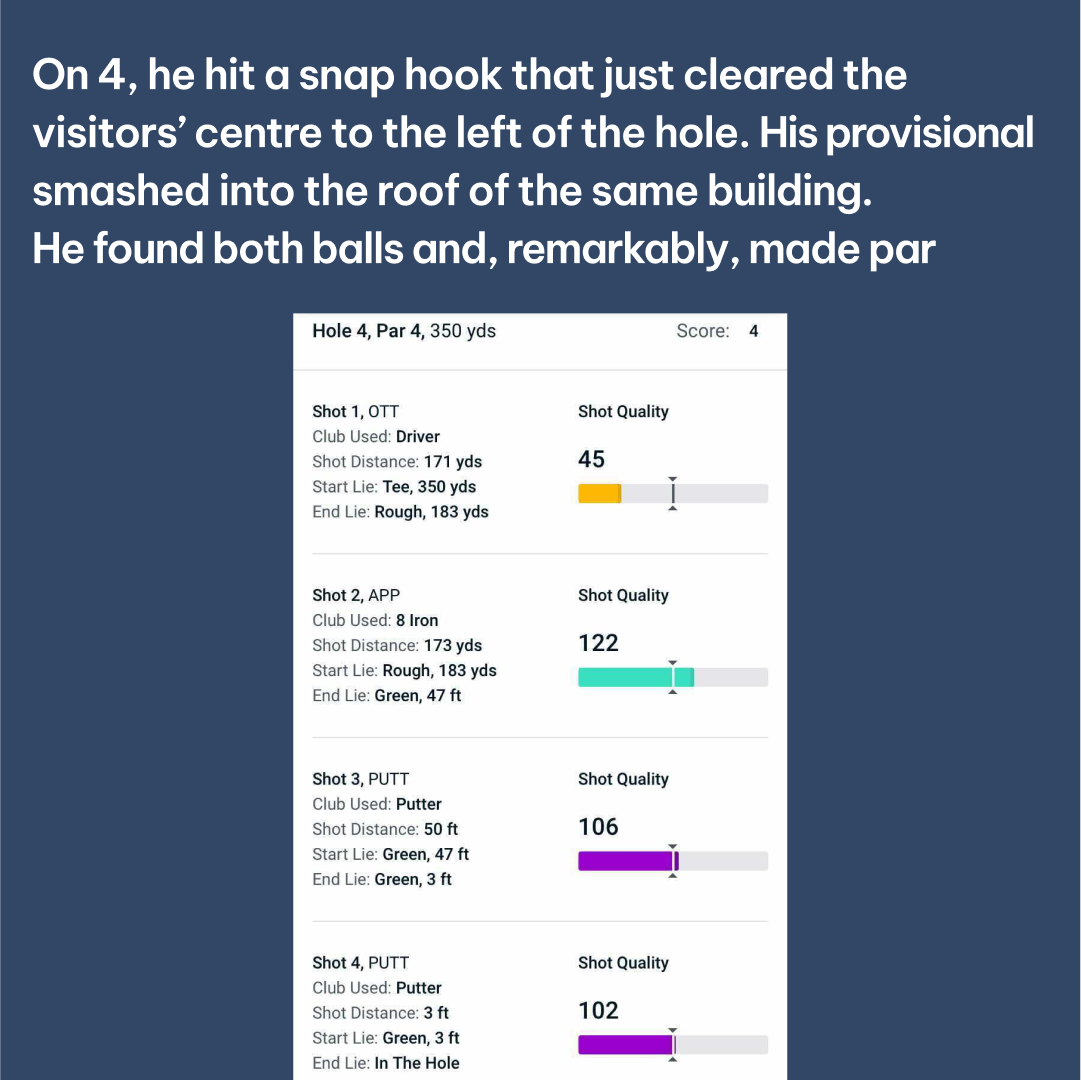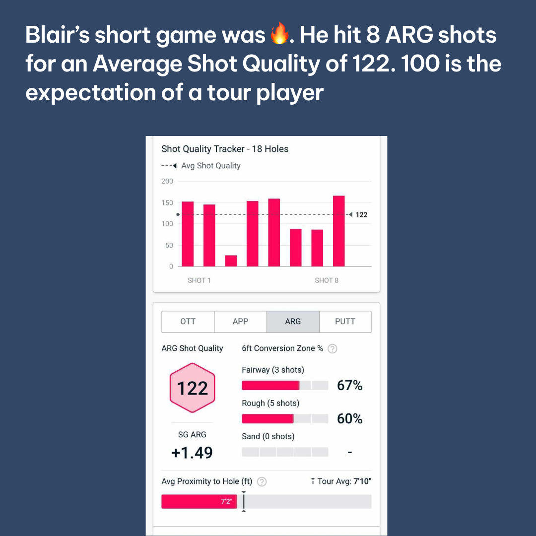 During the second round with ground to make up on the leader, Blair produced a really skillful display, utilising the bump-and-run shot wherever he could. An Average Shot Quality of 122 for Approach (APP) in the round helped him to secure a podium finish and cap off a fine few days.