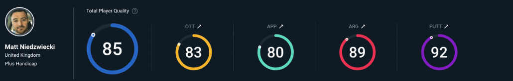 Matt Niedzwiecki: I look more at Player Quality. I like comparing myself to a tour pro [a Player Quality of 100 is male tour average]. I know I'm not going to get to that level, but I know there are certain shots I can hit that are on that level. With Shot Quality, knowing you can hit good shots is important, but I think understanding how good you are as a player is more important.