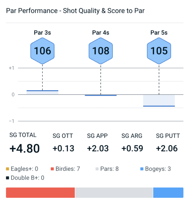 It’s an old adage that Masters contenders have to take advantage of Augusta’s par 5s. Scottie did just this in round 4, averaging nearly half a shot under par.