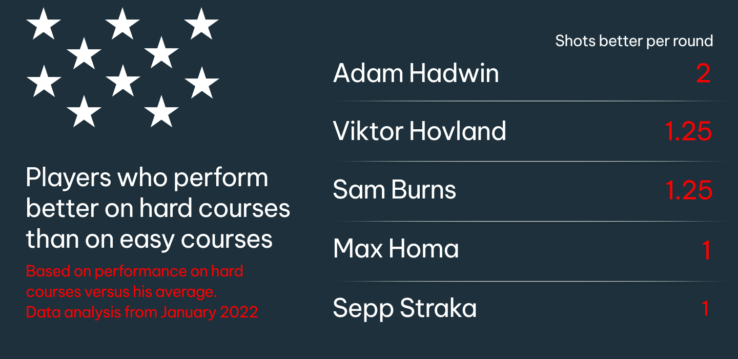 And one final thought from us: given that 15 of the last 20 US Open champions have become first-time major winners, we’ve taken a look at players who have not yet won a major and perform markedly better on hard courses. There a few very interesting names listed below.
