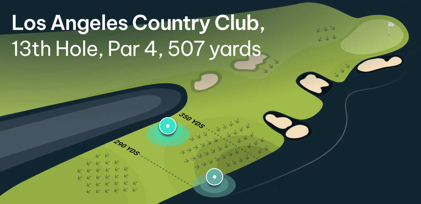 “On 13, there aren't many options,” he says. “It's really long from the back tee and they're going to play the back tee I think all four days. If the sun comes out and gets real windy and for the afternoon starters, 13 plays about 560 yards dead into a 10 to 12 mph wind with gusts up to 20. It's a driver.