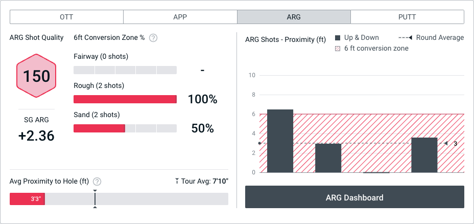 For all of the Arizona Alumni’s power OTT, his ‘Spanish hands’ were on display ARG in Madrid. In three of his rounds he managed to get up-and-down 100% of the time and during round 1 his ARG Shot Quality was 150 for the four shots he played. His highest scoring shot throughout the tournament was a 199 (tantalisingly close to Clippd’s famed 200 club) coming after a 17-yard hole out from the rough on the par-4 8th hole.