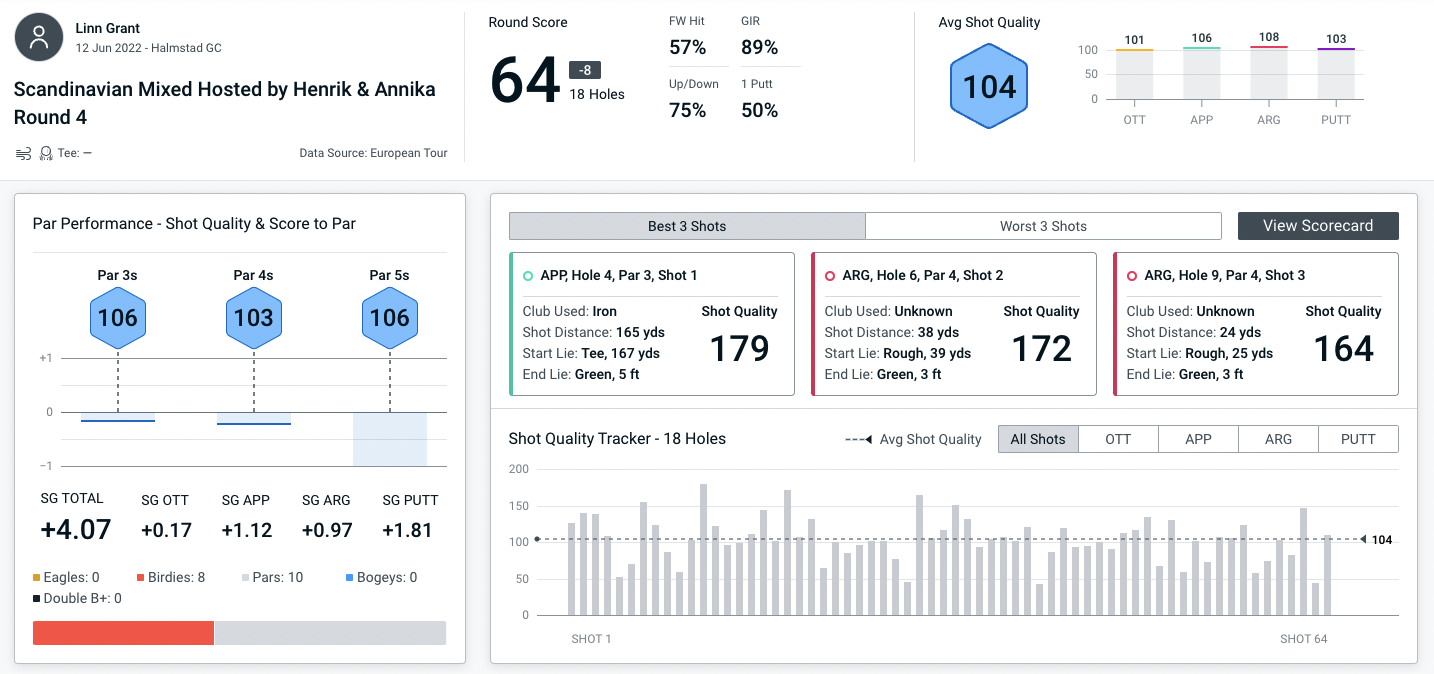 Grant shot a closing 64, eight under par, with an Average Shot Quality of 104. All departments of her game scored over 100, which confirms how consistently good she was across the board.