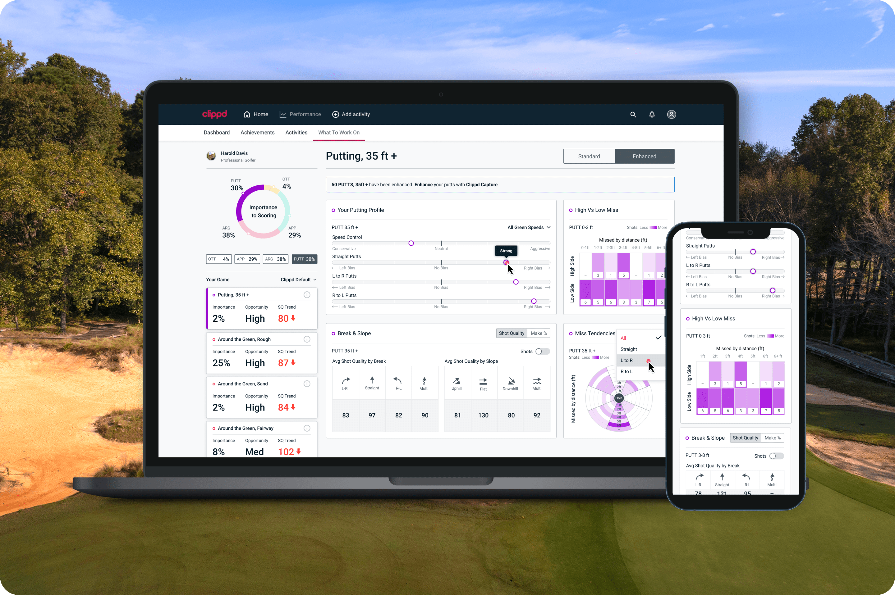 From evaluating how aggressive you are with your putts to your miss tendencies with your approach shots, Enhanced Analytics give you the complete picture.