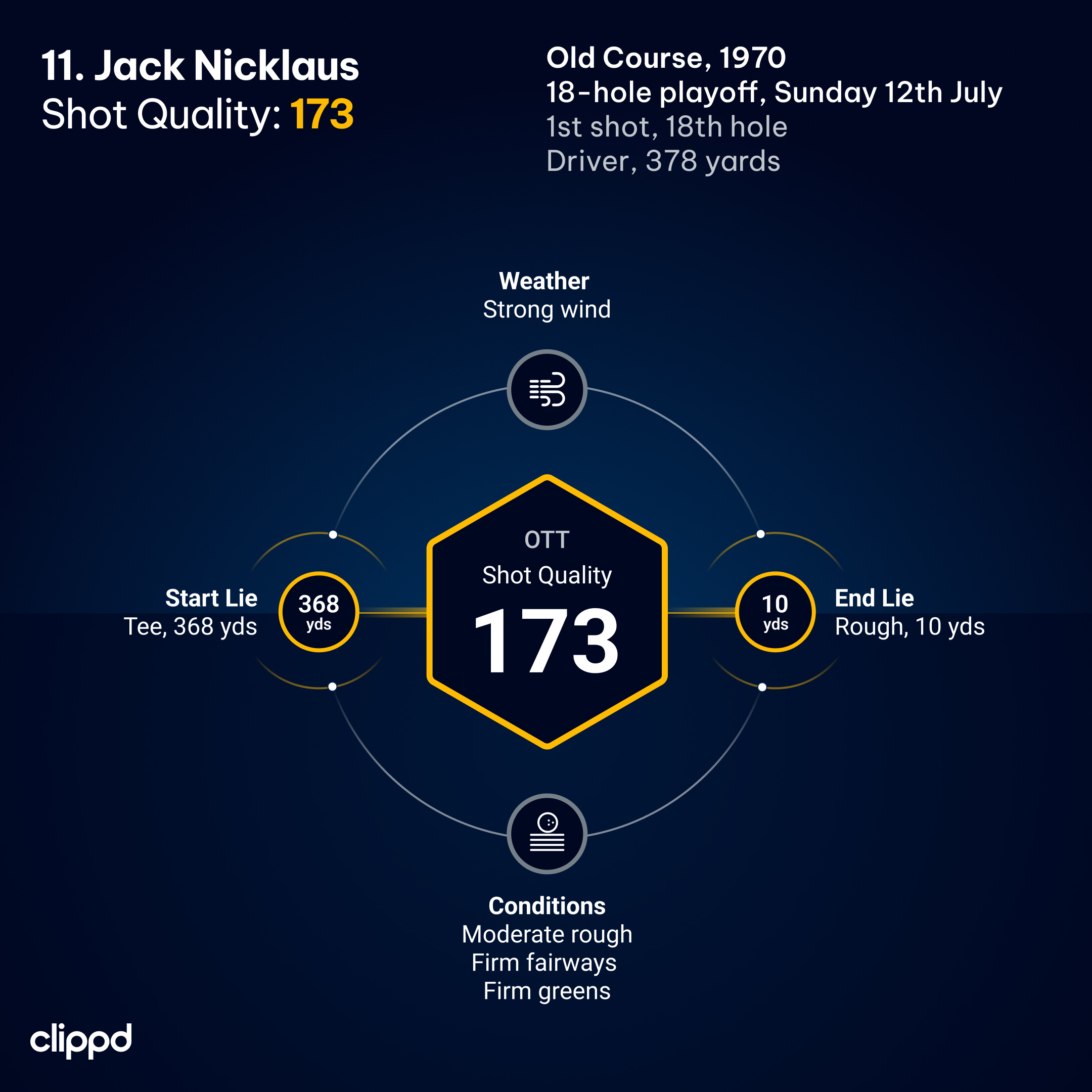 The next day, Nicklaus arrived on the 18th tee with a one shot lead and the wind lapping at his back. He decided to go in for the kill, removing his sweater and swinging his driver with everything he had. The ball came right out of the screws, landing short, then running up and onto the green before settling towards the back, 30ft away from the hole. Nicklaus got down in two for birdie and his eighth major title at the age of 30.