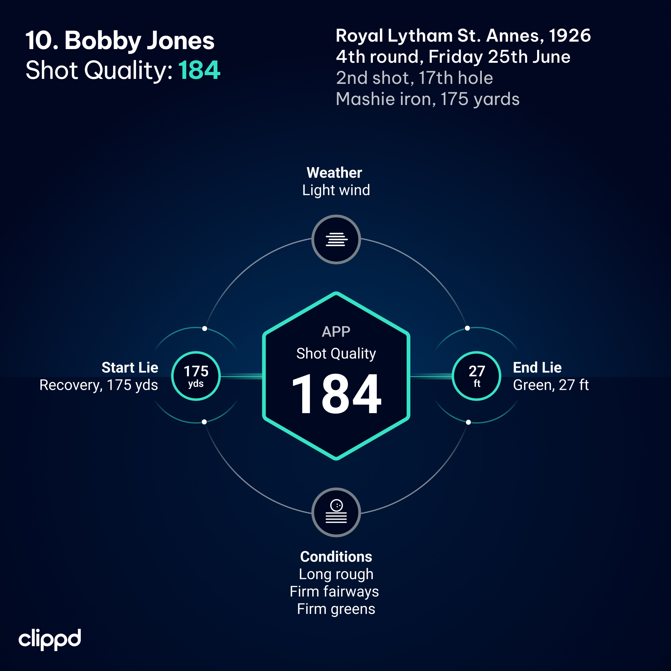 After hooking his tee shot into scrubby wasteland on Royal Lytham’s 17th hole, and with his playing partner, Al Watrous, safely on the green, Jones’ chances of winning his second Open Championship appeared remote at best. From where he was, he couldn’t see the green but he knew that he needed to carry the ball 175 yards and then get it to stop quickly.