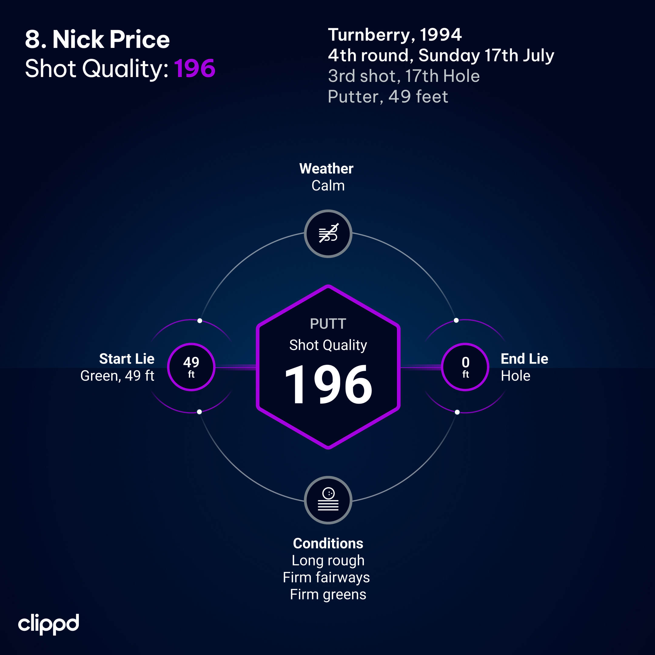 Coming into the 1994 Open Championship as the third-ranked player in the world, and with a major to his name, Nick Price was many pundits’ pick. However, as he walked towards his ball on the green of the par-5 17th in the final round, he trailed Sweden’s Jasper Parnevik by two shots.
