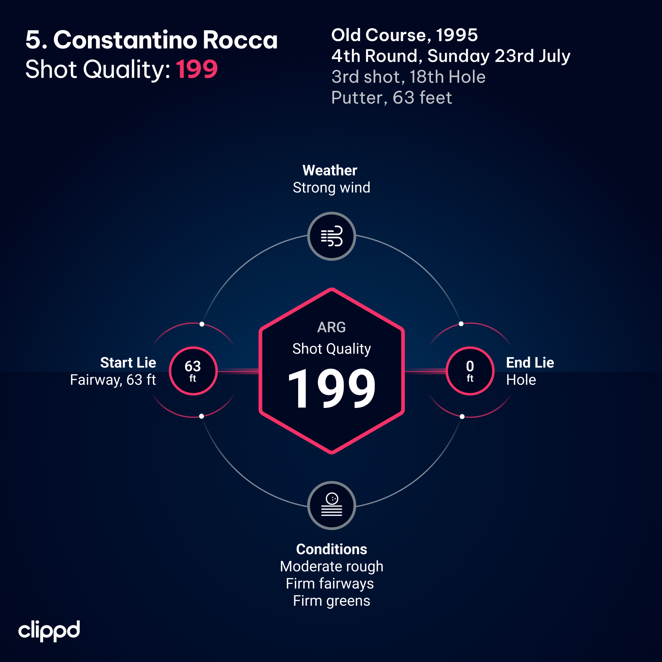 Constantino Rocca knew he needed an eagle on the final hole to win the Claret Jug outright. A birdie would be good enough to force a playoff with 'The Wild Thing', John Daly. The Italian smashed his drive more than 300 yards, his ball finishing just short of the green and leaving an outside chance for glory.