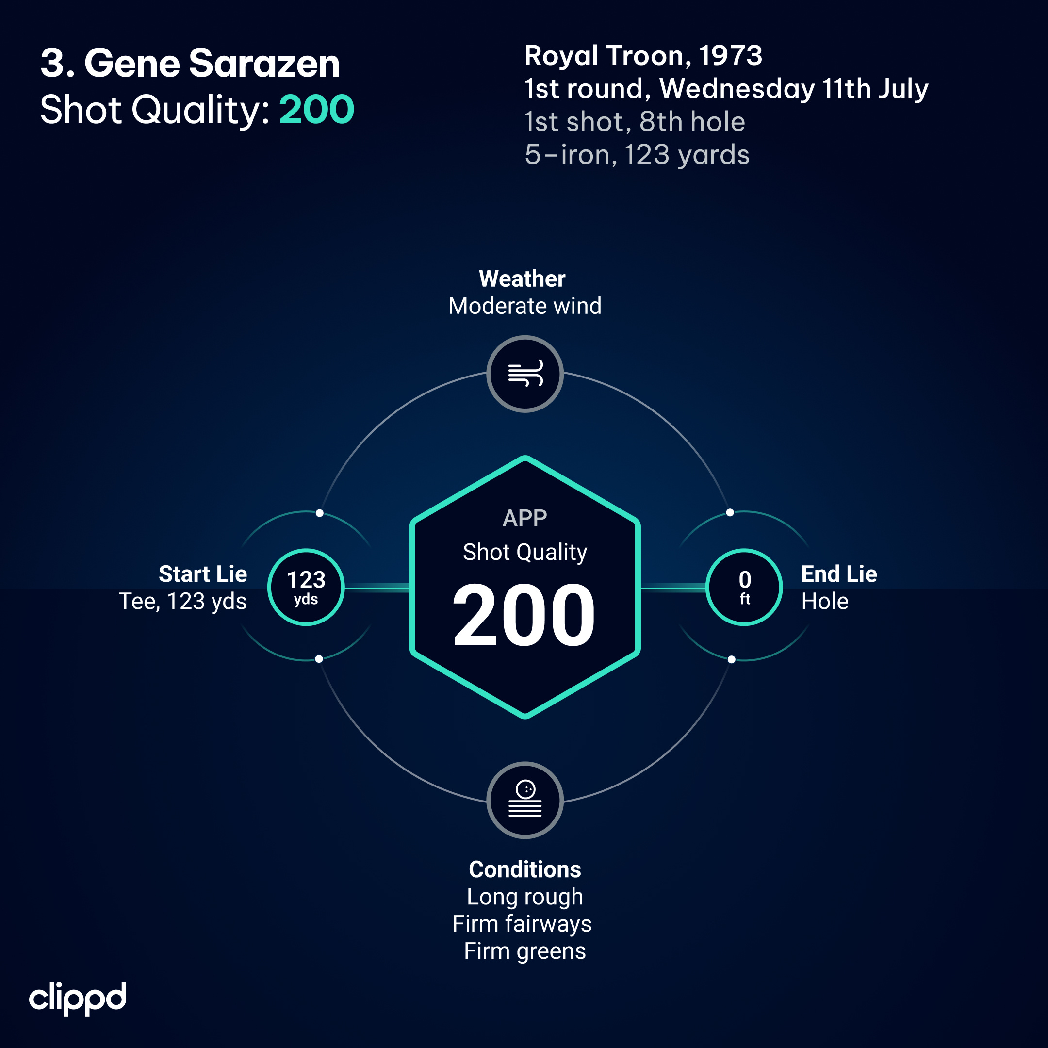 'The Squire' decided on a 5-iron and made the same move he had done for decades. The ball pierced the breeze, landed short of the hole, took a couple of hops and rolled into the hole for an ace. “When the crowd roared I realised the ball was in,” Sarazen told reporters after the round.