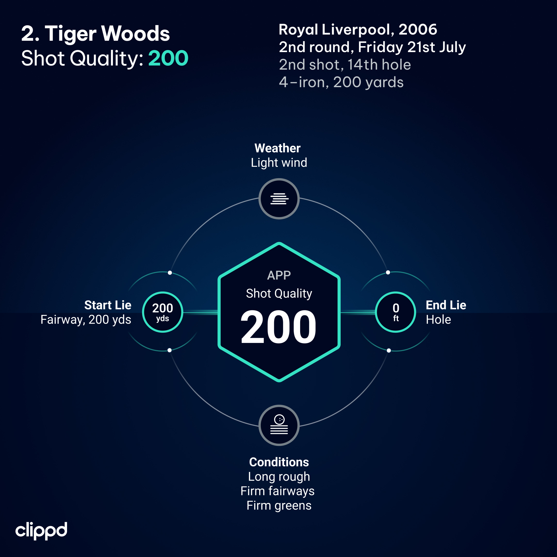 The eagle two gave Woods a one-shot lead, one he would not relinquish for the rest of the tournament. The win was particularly significant for Tiger as his father, Earl, had passed away just two weeks before the championship. His tearful embrace with Williams on the 18th green is something that will live long in the memories of golf fans; as will the remarkable shot that helped him to get there.