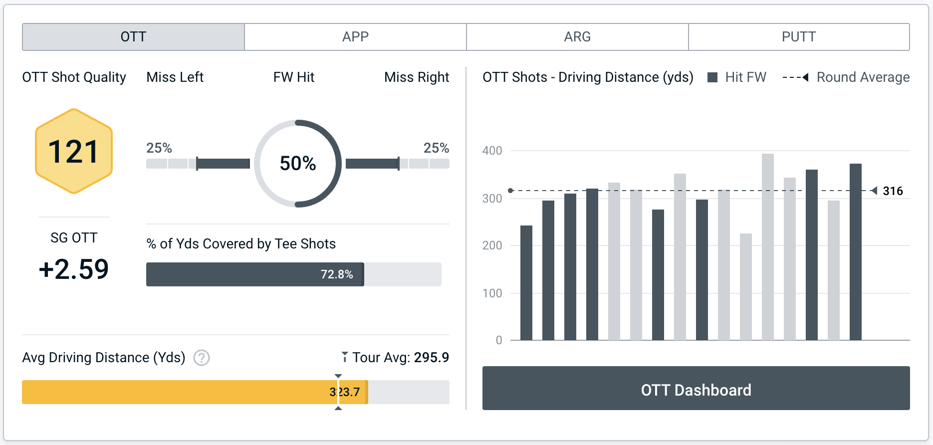 His Average Shot Quality for the round was 115 (100 is what Clippd’s algorithms expect of a tour player), and he was 121 for OTT (Off The Tee), averaging 323 yards with his drives. Young missed eight fairways out of 16 but was never inconvenienced. On the 16th, he unleashed a 361-yard drive, encouraged by the back right hole location. “I felt like, even from the left fescue pretty far down there, you just have to dump it on the front edge of the green and it will roll somewhere around that hole.”