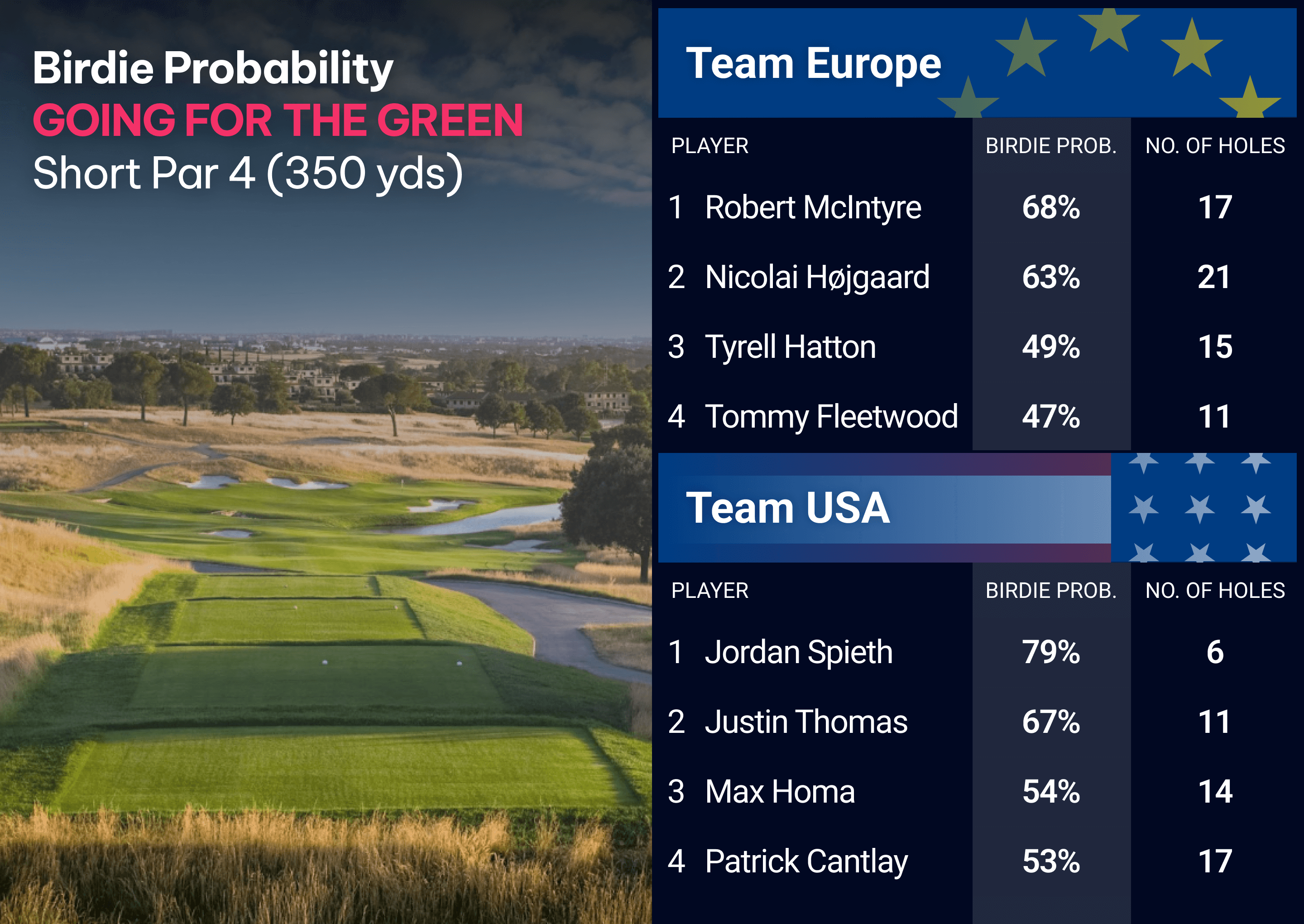 Marco Simone G&CC has two drivable par 4s at key points in a back nine that has been designed to produce matchplay drama. What does the data say about how players on each side perform on these half par holes and how will the two Ryder Cup captains use these insights?