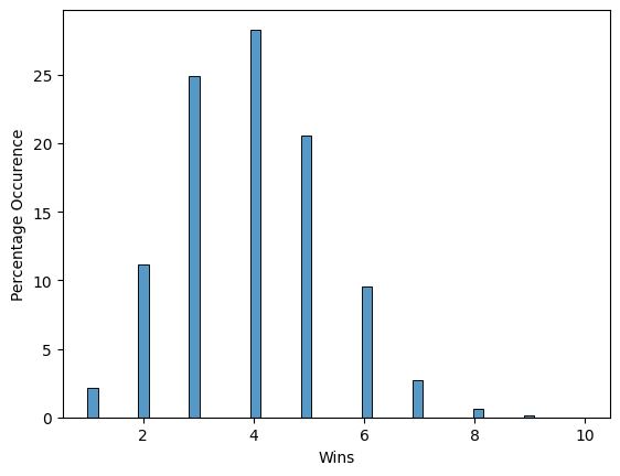 In reality, Scheffler won twice over these 17 tournaments. But as the graph above shows, with just an average performance at 10 feet and under, the highest probability is he would have won four times as well as making it into two playoffs.