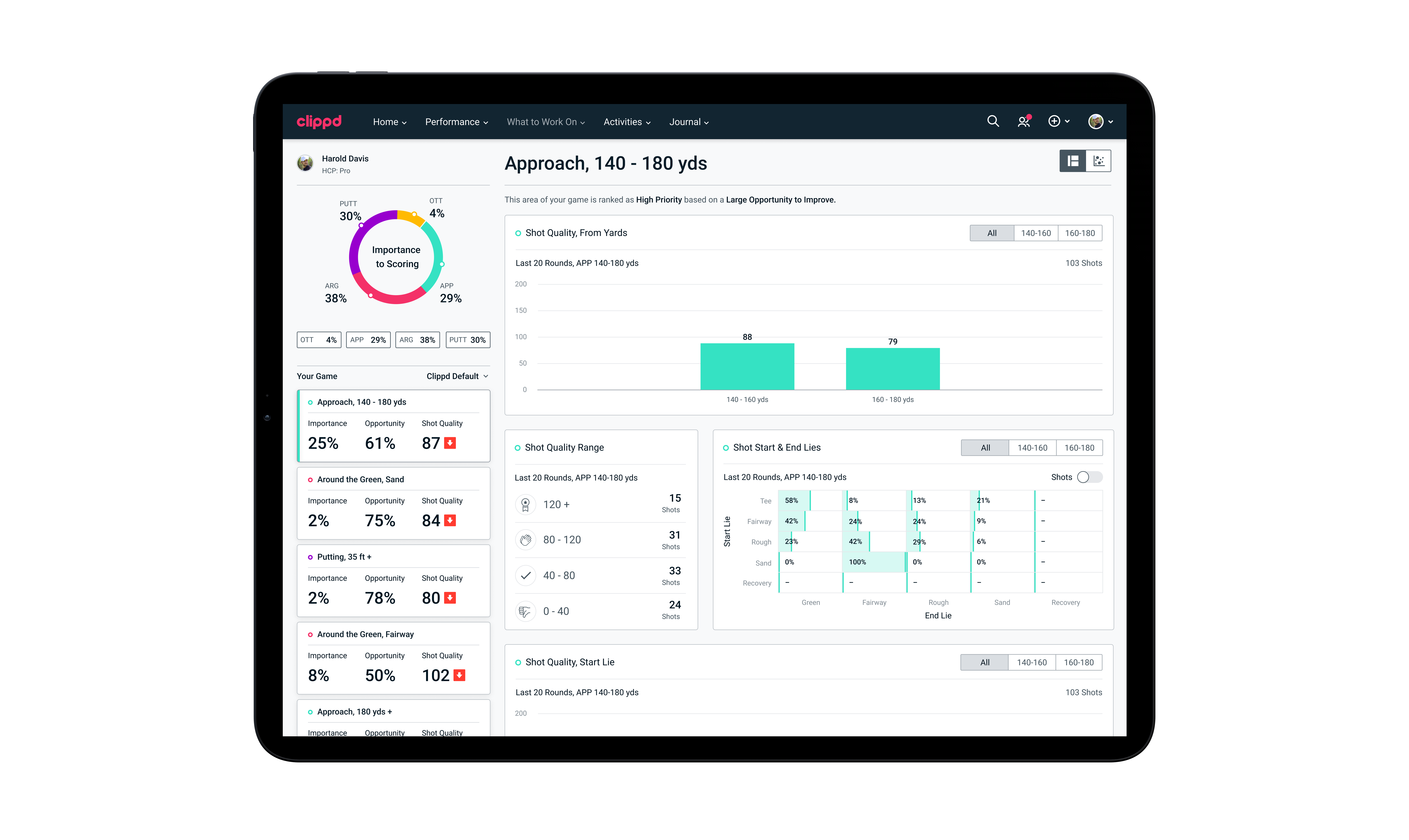 Our Clippd Default algorithm then produces a personalised, data-driven and prioritised list of What To Work On suggestions, with deep, supporting information on each to help you make informed decisions on what to do next. What To Work On provides actionable insights that both player and coach can use to improve.