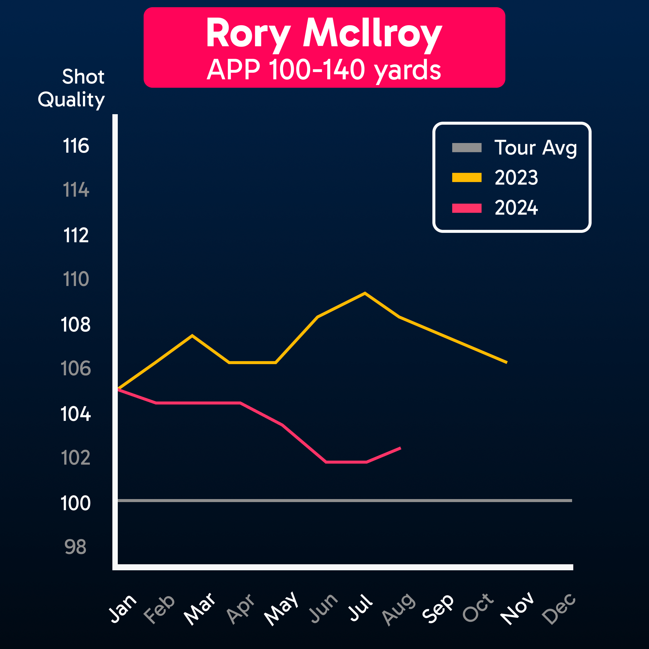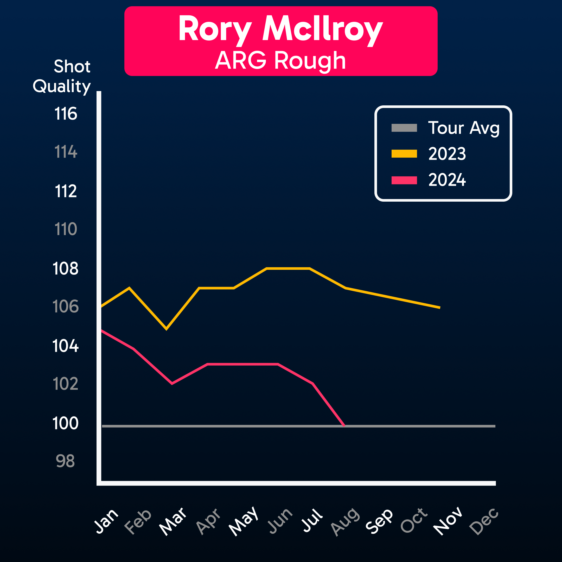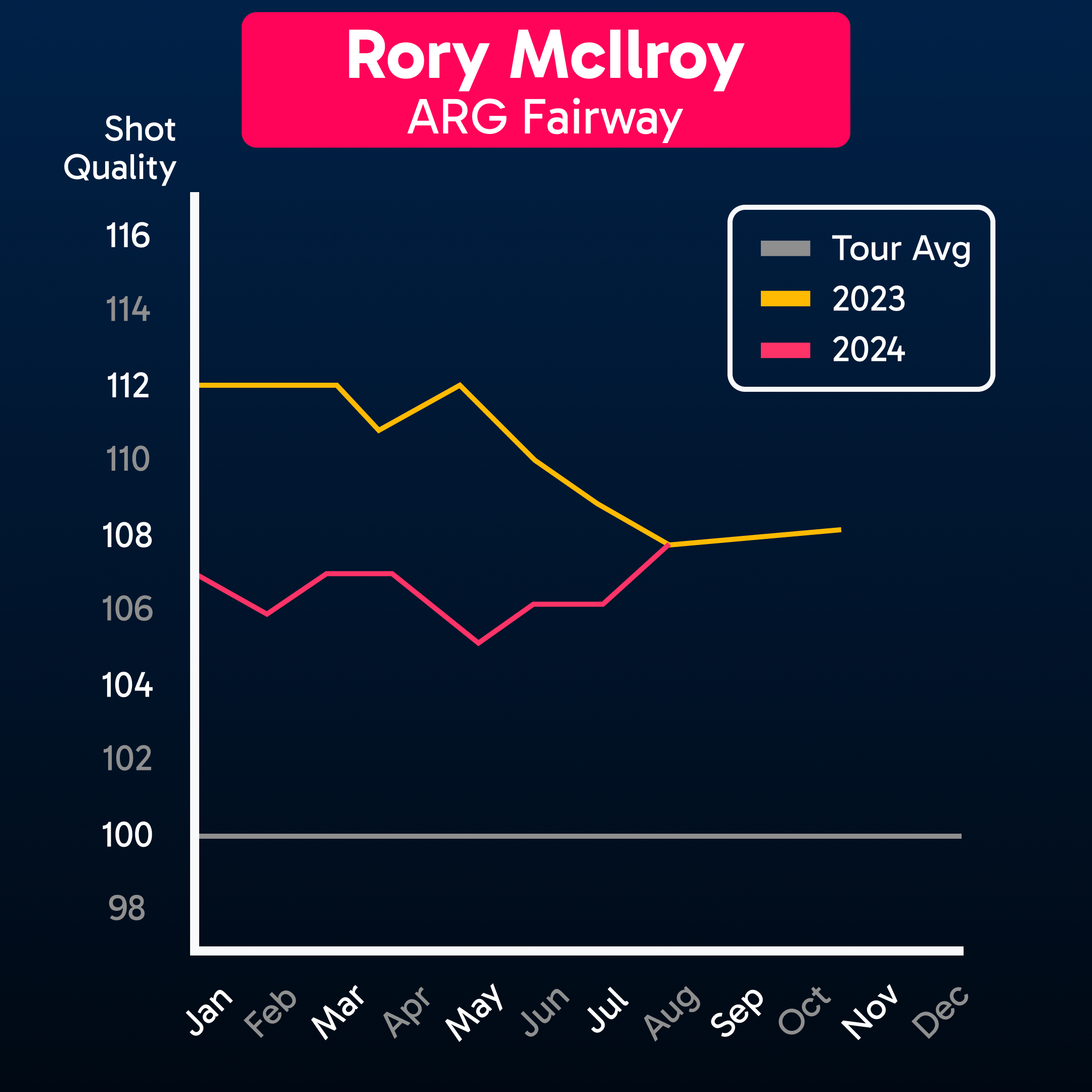 Rory's chipping from tightly mown grass (ARG Fairway) and from rough (ARG Rough) were also a significant way down on where he was in 2023.